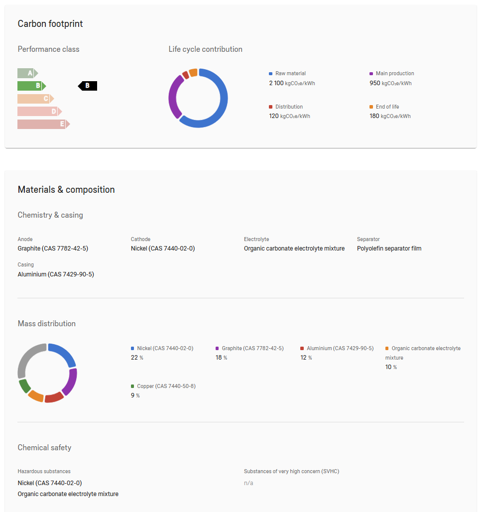 Origo Product Cloud enables the precise and fully automated calculation of all legally required dynamic attributes for battery products.