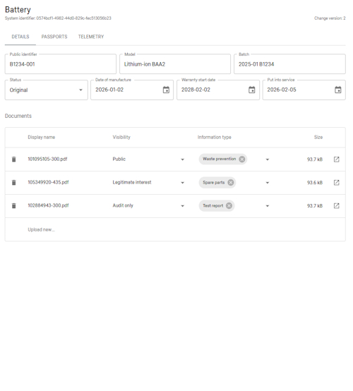 Ensures that key information about a battery, such as raw material sources, manufacturing steps, performance data, and end-of-life handling is tracked throughout its entire lifecycle.
